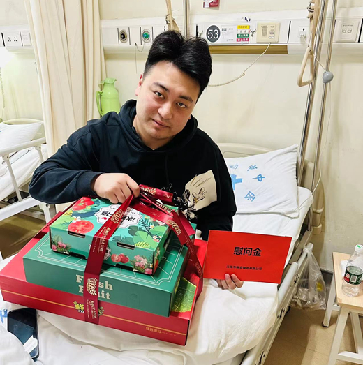 近日,受公司領(lǐng)導(dǎo)委托,第一分公司管理人員到醫(yī)院探望剛做完取鋼釘手術(shù)的職工。大家親切詢問(wèn)了他的治療情況,勸慰其放松心情,祝愿早日康復(fù),并代表公司向他送上慰問(wèn)品和慰問(wèn)金,把公司領(lǐng)導(dǎo)和同事的關(guān)懷送到了他心中。