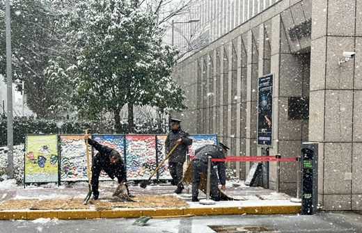 12月18日,無錫迎來了全市強(qiáng)降雪天氣,為錫城換上潔白盛裝,美麗的雪景背后是可能出現(xiàn)的道路結(jié)冰與積雪。為了保證警務(wù)中心大院的通行安全和正常秩序,防止因路面結(jié)冰對車輛通行造成影響,公司領(lǐng)導(dǎo)靠前指揮,迅速部署,全力組織駐警務(wù)中心保安中隊實(shí)施清雪除冰作業(yè)。隊員們在大院主干道及各進(jìn)出口拋灑工業(yè)鹽,鋪上草墊,每小時進(jìn)行一次破冰除雪,確保車輛、行人安全通行。