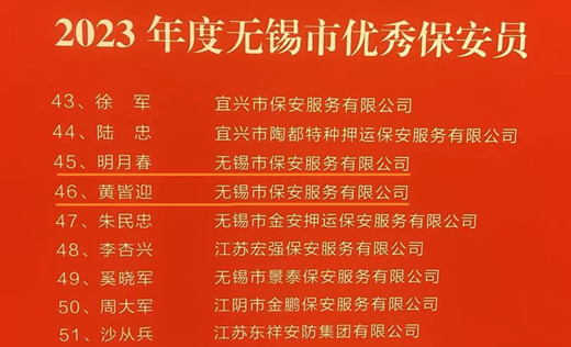 在9月23日召開的無錫市保安協(xié)會第三屆第六次會員大會上,公司蟬聯(lián)年度市優(yōu)秀保安服務(wù)公司和信譽度五星級公司,保安員黃皆迎、明月春獲頒2023年度市優(yōu)秀保安員。