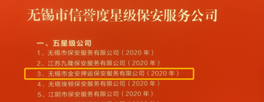 金安押運榮獲2023年度無錫市優(yōu)秀保安服務公司